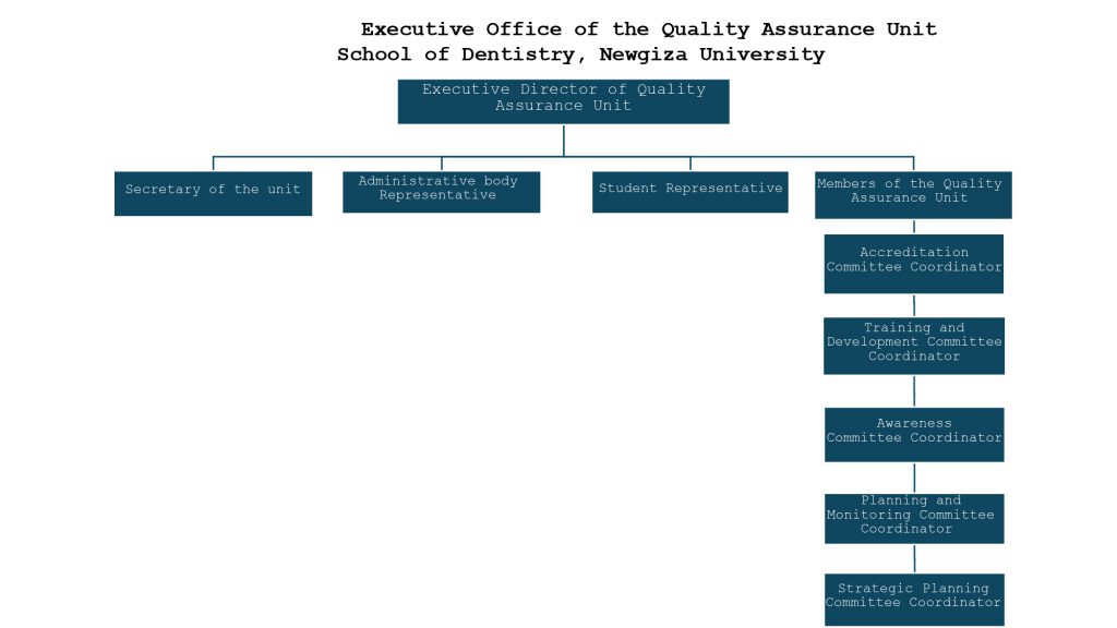 The systems and practices implemented by the unit aim to ensure the schoolworks in partnership between staff and students to continually improve the educational program and learning environment. The unit targets the identification of good practices as well as deficiencies and obstacles. It works on: performance follow up; suggestions for development and enhancement; staff development; and the systematic review and development of processes, policies, strategies and priorities to support continuing improvement. The unit’s approach is aligned with the adopted quality assurance system of New Giza University and the National Authority for Quality Assurance and Accreditation of higher education; aiming to fulfill the mission and vision of New Giza University and the School of Dentistry.