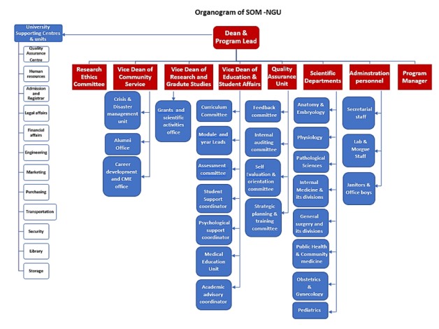 The SOM-NGU is committed to providing outstanding medical education capable of graduating competent physicians, dedicated lifelong learners, and innovative researchers, all prepared to assume leadership roles and provide exemplary, patient-centered care. Furthermore, the School fosters scientific research ,staying attuned to global developments, and affirms its societal responsibility to engage in meaningful community service.