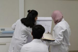 This session is a clear example of NGU’s pursue to provide the students with a chance to apply their theoretical knowledge and work effectively in the lab. The students applied the rules of analytical chemistry to draw a calibration curve between known concentrations and the absorbance using colorimetric methods, then apply their knowledge to perform a glucose tolerance test.
