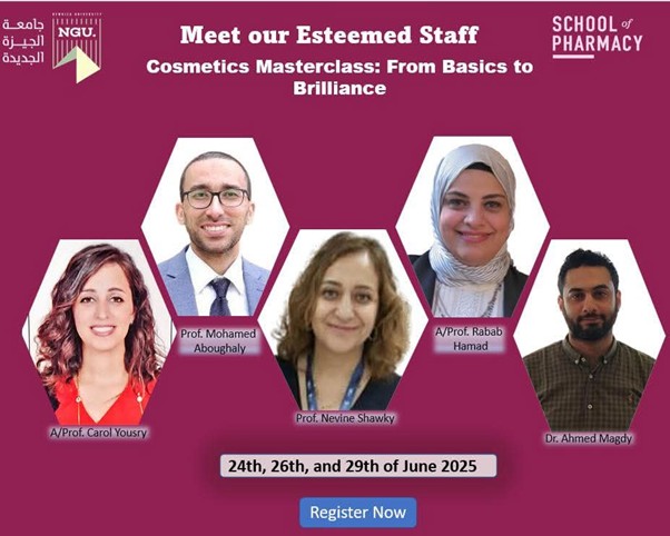 The workshops were conducted by Prof. Nevine Shawky, A/Prof. Carol Yousry, Dr. Ahmed Magdy, Dr. Suzan Fangary, Dr. Rodayna Atef (SOP Department of Pharmaceutics and Industrial Pharmacy), and Dr. Alaa Yousef (Founder of Giovanni brand for Cosmetics products).