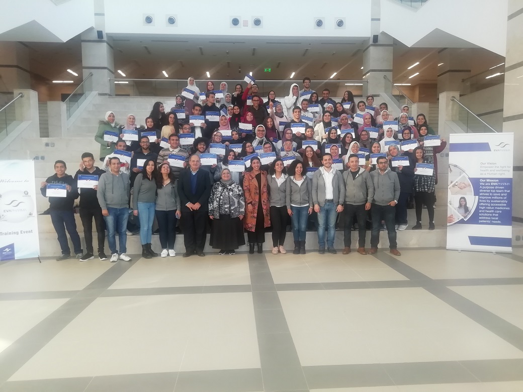 A business simulation workshop was conducted by Eva-Pharma training manager Dr. Sherief Mounir and his team with Year 1 pharmacy students.