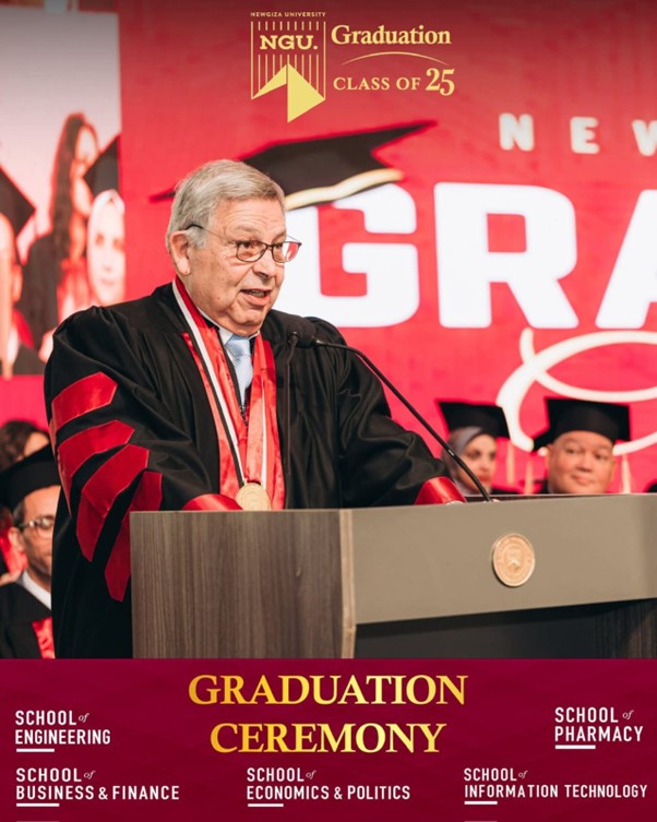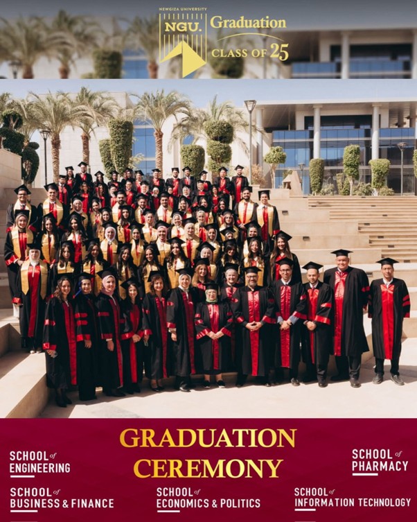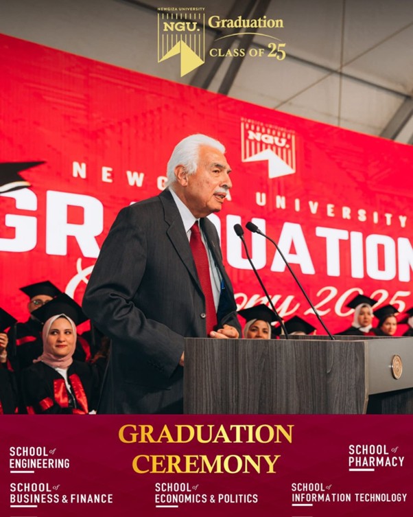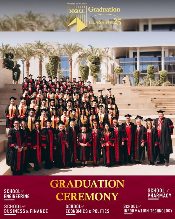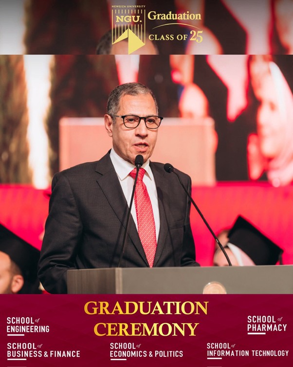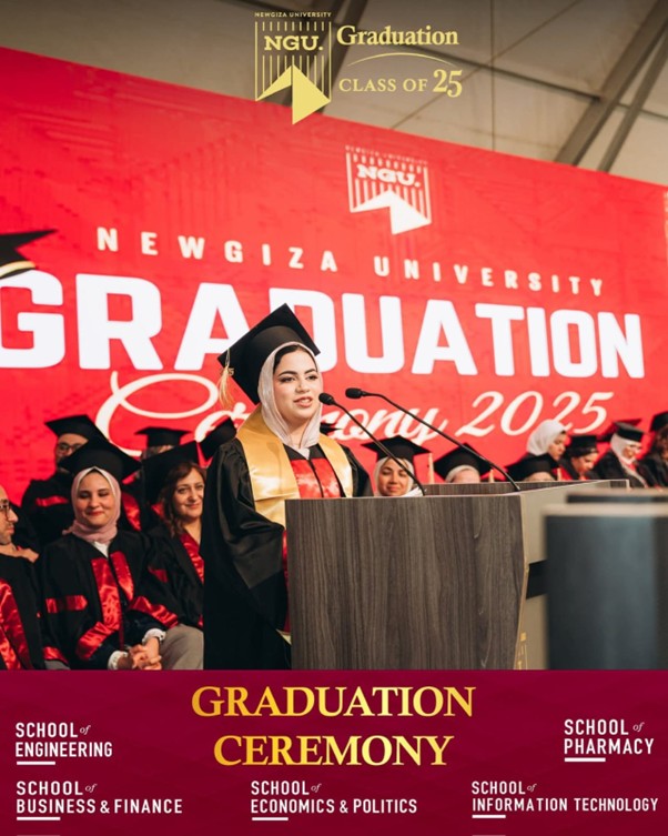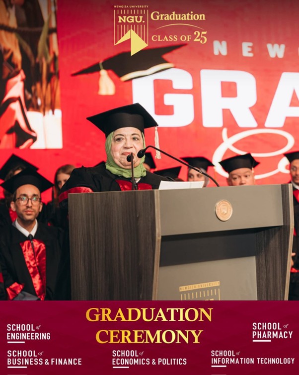 Prof. Dr. Ahmed Sameh Farid (NGU President) and Dr. Ahmed Nazif (Former Prime Minister of Egypt) delivered welcome speeches to the graduates, extended their heartfelt congratulations and wished them a successful and prosperous professional future. Prof. Dr. Manal Maher (SOP Dean), also delivered a speech in which she affirmed SOP members’ pride in the graduates and their joy in their accomplishment. She expressed her sincere wishes for their continued success and distinction, encouraging them to represent the School and the University in the best possible manner within the labor market.