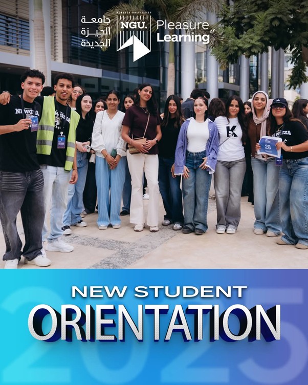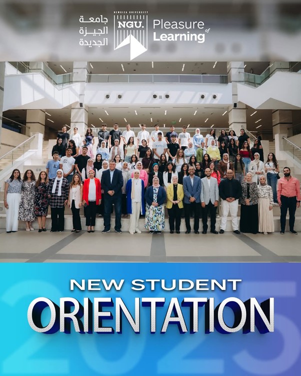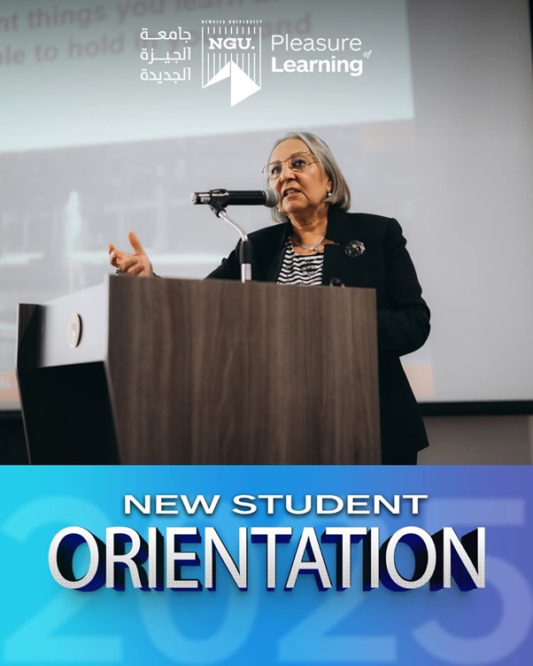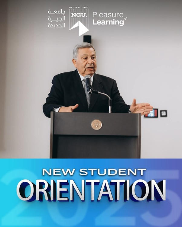 The new enrolled students for the academic year 2025-2026 were welcomed by Prof. Ahmed Sameh Farid – NGU President, and Prof. Lamis Ragab – NGU Vice President.