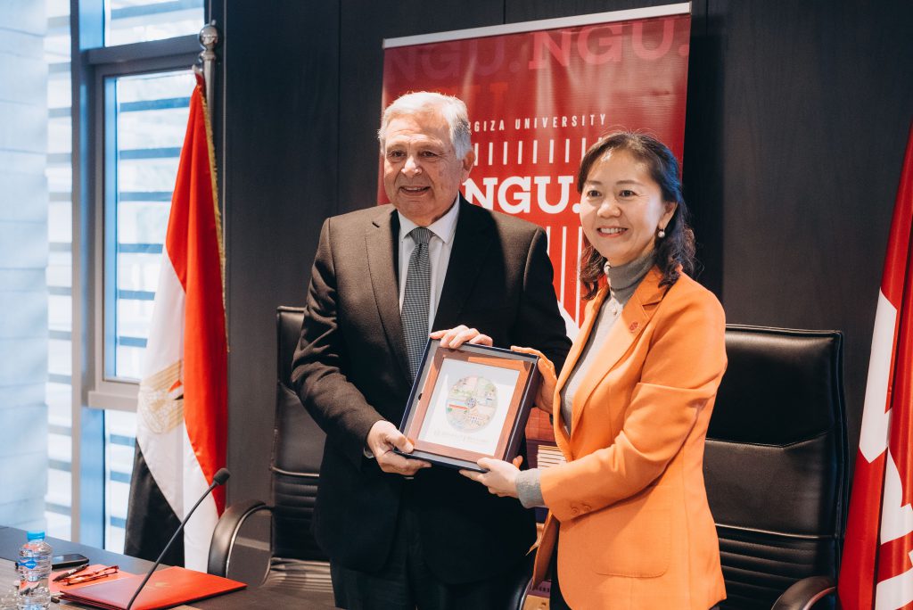 Prof. Dr. Ahmed Sameh Farid, President of Newgiza University (NGU), and Prof. Dr. Yin, Chair of the University Council at Shanghai International Studies University (SISU), have officially signed a Memorandum of Understanding to foster long-term academic and cultural collaboration between Egypt and China.