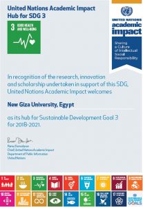 Newgiza University (NGU) has been selected by the United Nations Academic Impact (UNAI) to become the hub for Sustainable Development Goal number three: Health and Well-being for all. NGU is now one of the 17 universities around the world that have been selected to become a hub for the 2030 UN Sustainable Development Goals. SDG 3 will ensure healthy lives and promote well-being for all at all ages.
