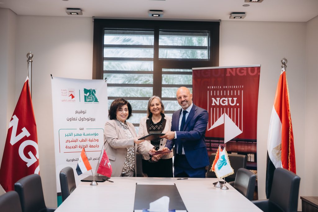 Under the supervision of Prof. Dr. Lamis Ragab, Vice President of Newgiza University (NGU), the School of Medicine proudly signed a cooperation protocol with Misr El Kheir Foundation, one of Egypt’s leading nonprofit organizations dedicated to eradicating poverty, illness, and illiteracy through sustainable human development.