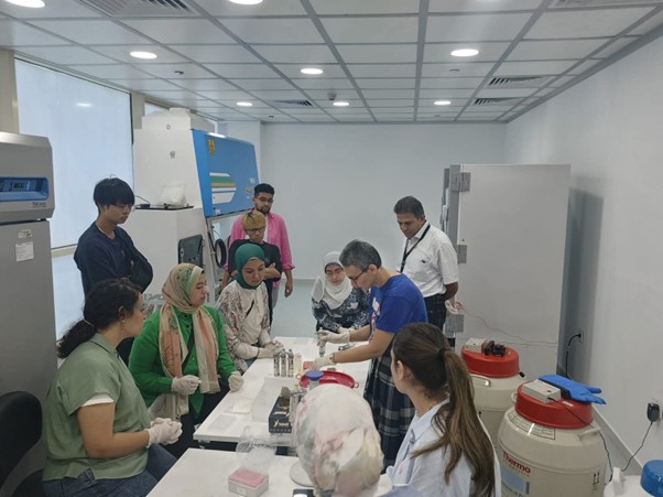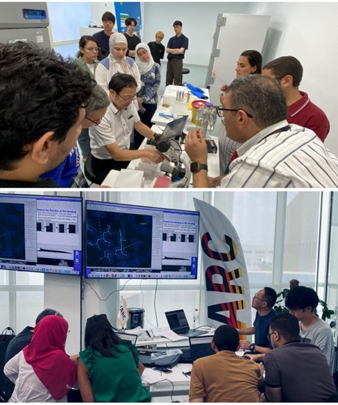 The workshop was presented by a Japanese-Egyptian team who have formed an alliance to promote the use of the Croy electron microscopy technology (which was recognized by a Nobel prize in 2017) for protein structure determination. The team consisted of 9 Japanese scientists, led by Professor Yoshikazu Tanaka (from Tohoku University in Japan), and 3 Egyptian scientists from the Faculty of Pharmacy, Cairo University, led by Dr. Noha M Elhosseiny.